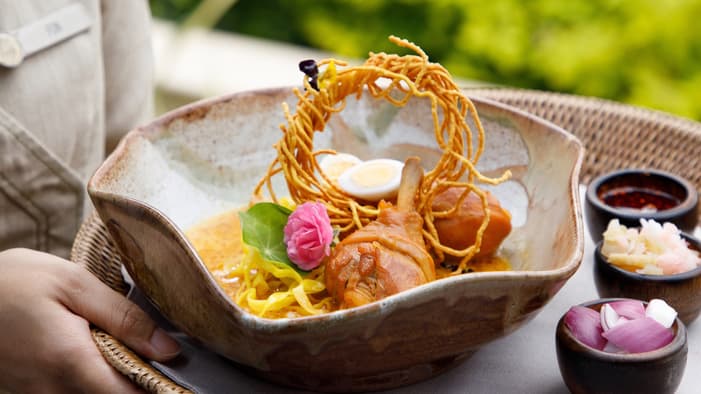 我们的餐厅和烹饪工作室由知名建筑师兼园艺师 Bill Bensley 设计,是酒店提供清迈烹饪课程的核心场所。这处烹饪殿堂坐落在一座迷人的泰式柚木屋中,处处彰显着传统的兰纳优雅格调。2 / 5
