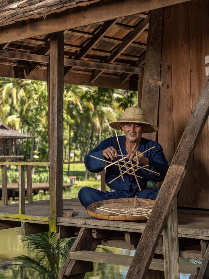 泰式凉亭“Chaan Baan”(即传统泰式房屋外面的休闲空间)坐落在充满田园意趣的庭院中,让您近距离亲身领略这片土地上的文化氛围。您可以了解历史悠久的种稻工具和方法技巧,在农民的指点下亲自插秧,在旋转的陶轮上制作陶器,用天然染料在布料上涂绘出美妙的画作,在我们精心栽种的香料植物蔬菜园里漫步欣赏,或者给性情温和的本地水牛洗个充满仪式感的澡。