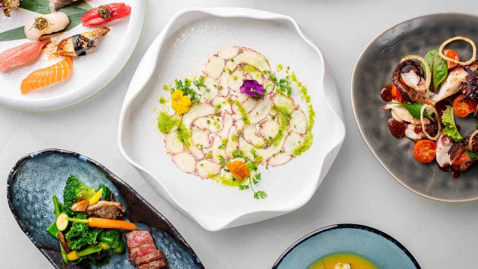 在我们时尚的屋顶绿洲品尝融合日式风味的创意 Nikkei 美食,同时将壮丽的城景与湖景尽收眼底。2 / 4