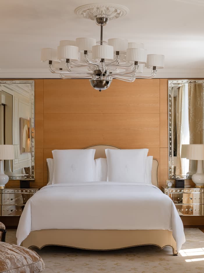 时尚精致的套房有木地板,色调主打柔和的米黄色、白色和哑光银色,珍稀黑色木材成为其中的点缀。房内还配有 20 世纪的现代经典风格家具。