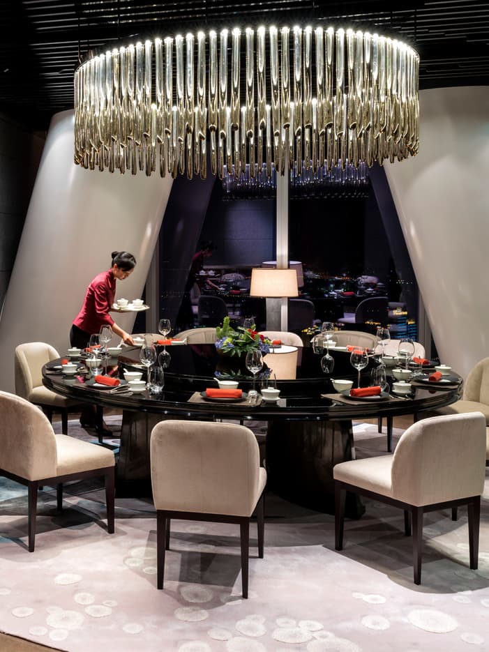 坐观迷人江景,感受浓郁的现代都市气息,位于 99 层的天吧为您带来不同凡响的感官体验。晶莹剔透的水晶吧台与优雅简洁的哥特式家具交相辉映,营造出时尚灵动的氛围。在星光闪烁的月夜下品尝富有创意的鸡尾酒,伴随着悠扬的旋律,沉醉于光影交错的城市夜景中。