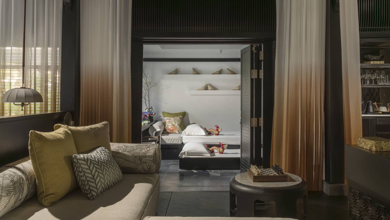 单卧室海景别墅 单卧室海景别墅- 晨间,在大海的声音与美景中醒来,阳光于床帘间跃动。于私人露台上放眼眺望闪烁着诱人光芒的海滩。
