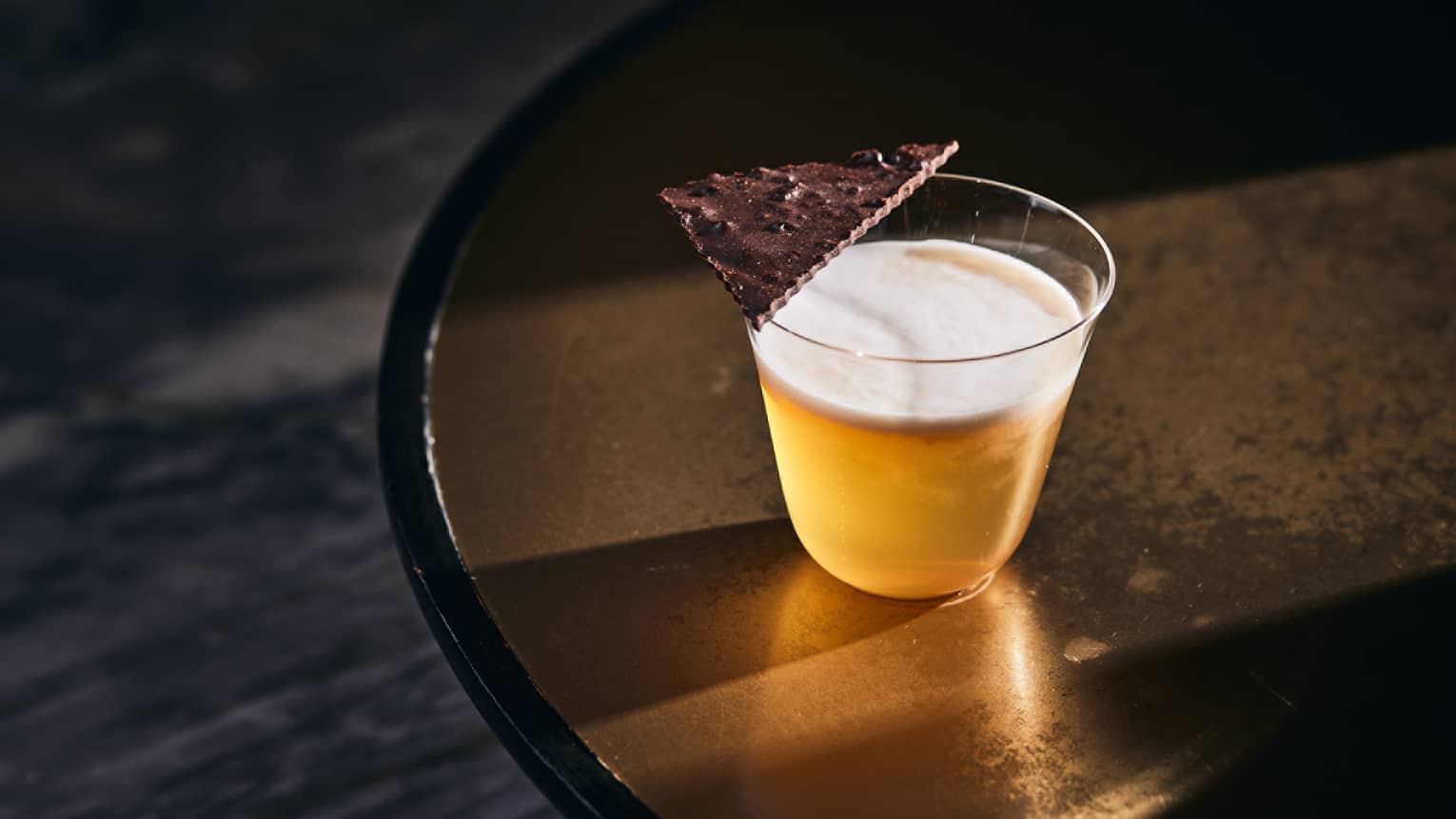 喜欢怀旧和趣味体验,定要一嚐Grapefruit & Cacao 20th Century(港币195元)。 以Monkey 47毡酒、阿华田、西柚糖浆、苦艾酒和香槟调制而成,是经典毡酒20th Century和French 75号的奶洗变奏。 这款鸡尾酒配有香脆的阿华田巧克力,带味蕾重返童年时光。