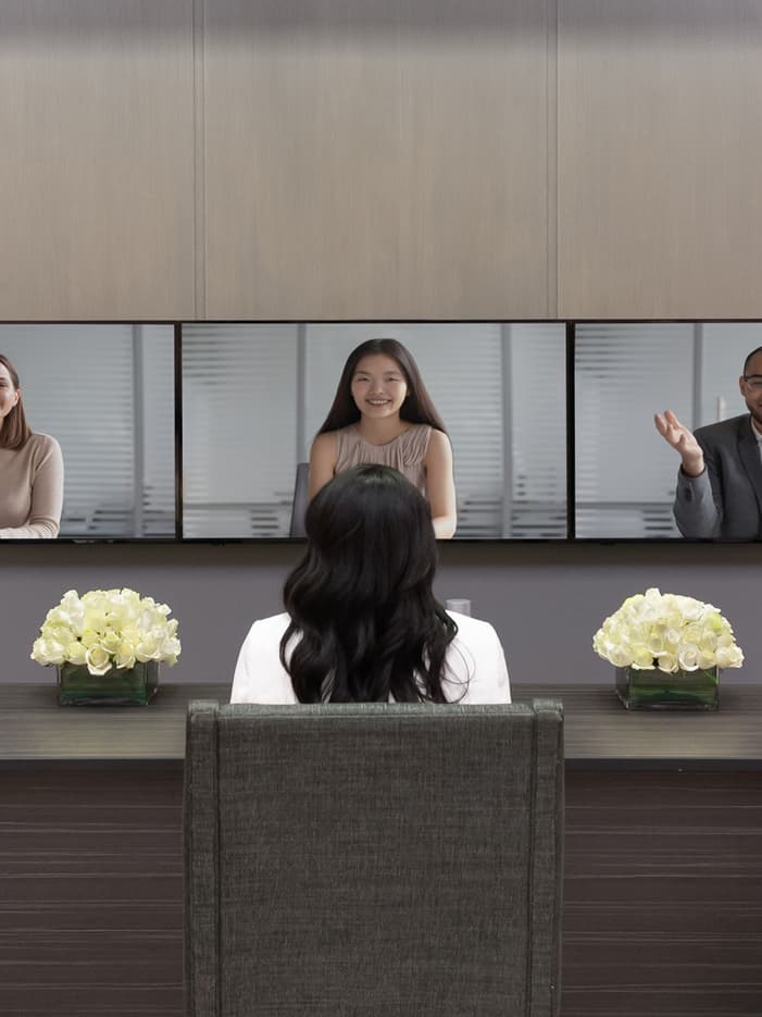 混合会议借助我们先进的技术设备,包括带外置扬声器的罗技视频会议摄像头和 LED 电视,满怀信心地迎接新常态。