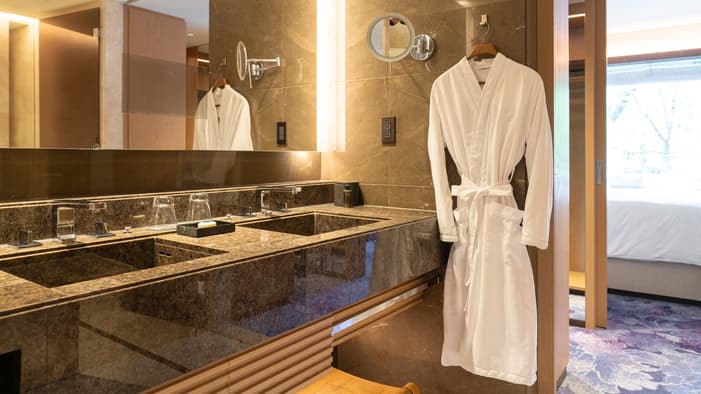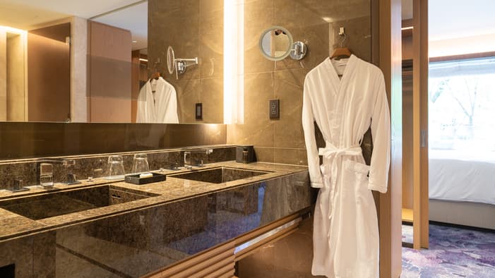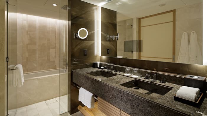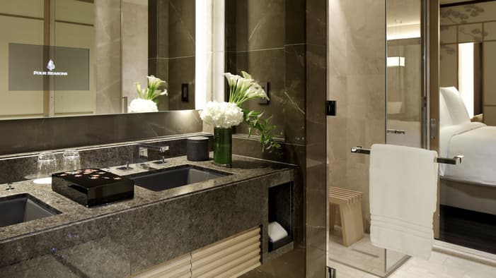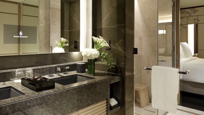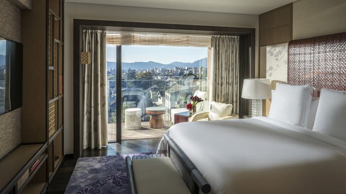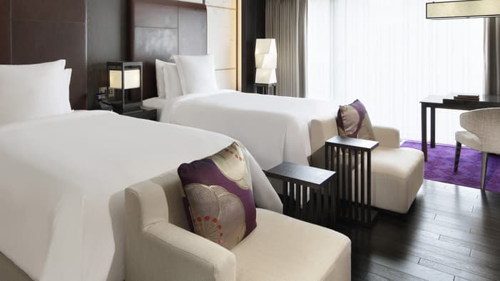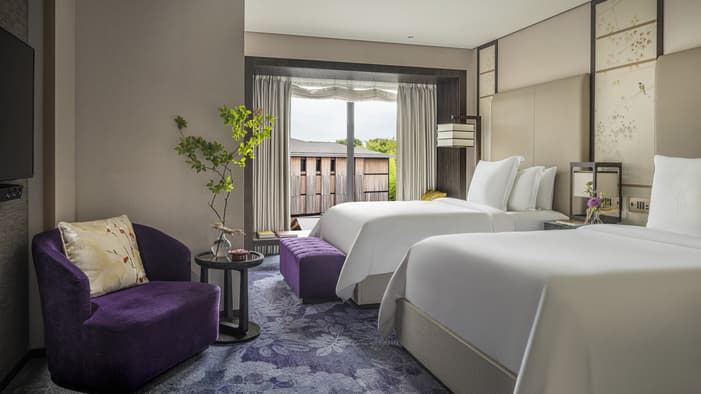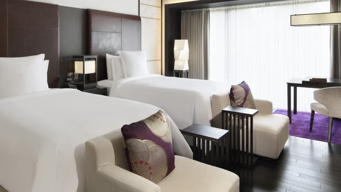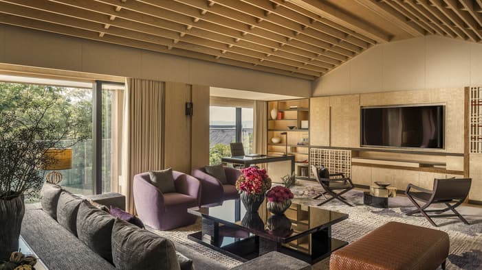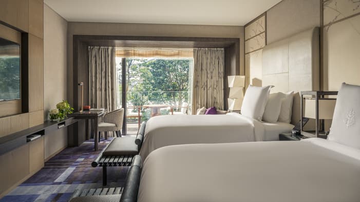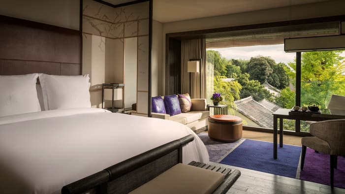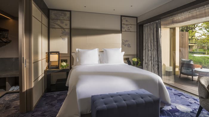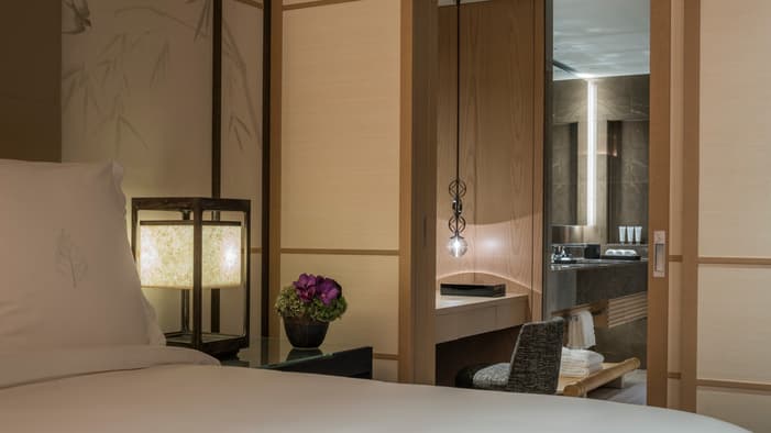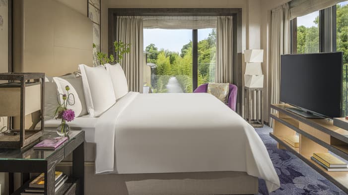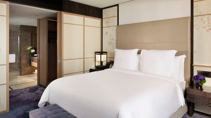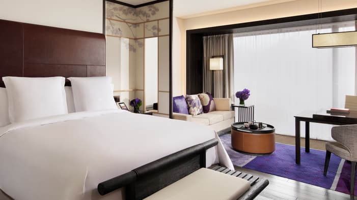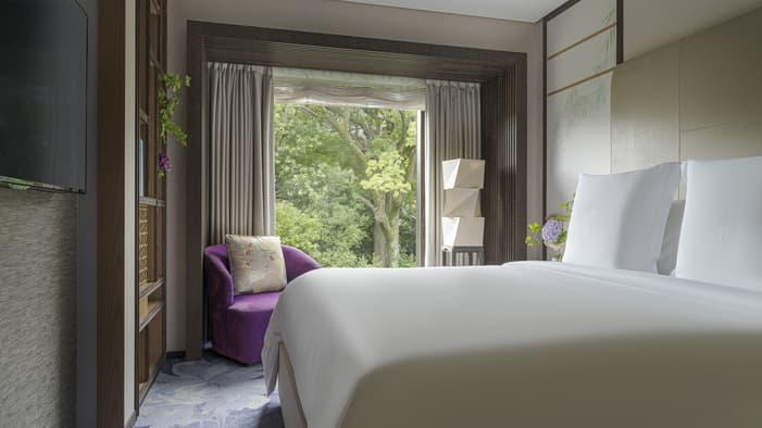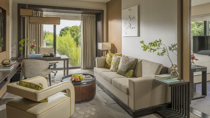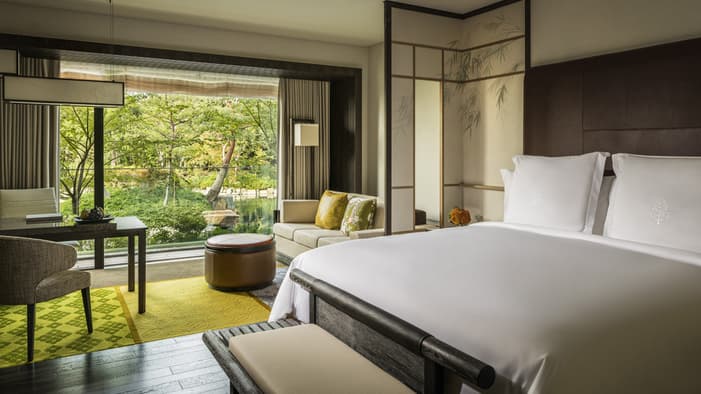 宽敞的套房设有独立的起居区和就寝区,大理石浴室禅意缭绕,窗外水池庭园的景致令人心旷神怡,非常适合商务差旅或家庭度假时下榻居停。