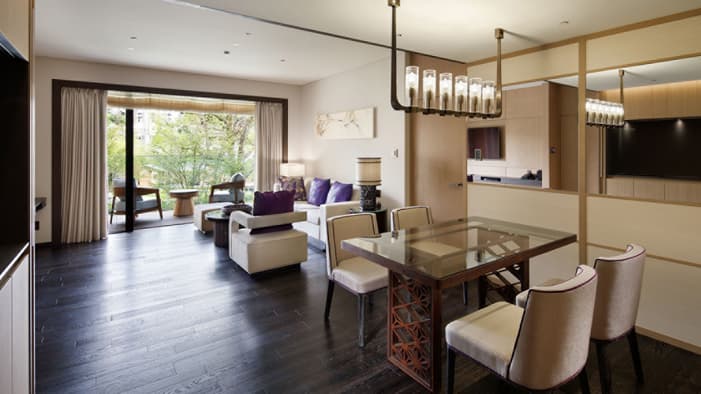我们奢华的住宅式套房提供居家生活的一切所需,为寻求灵活便利和私密享受的人士营造出宁谧的居停空间。套房以日本的“放松之道”为设计理念,私人厨房和齐全的设施用品可让您轻松款待来客。从迎宾香槟,到为您打造个性化住宿体验的专属宾客体验大使,下榻于此,您可专享一系列尊崇礼遇,收获美妙而难忘的京都之旅。