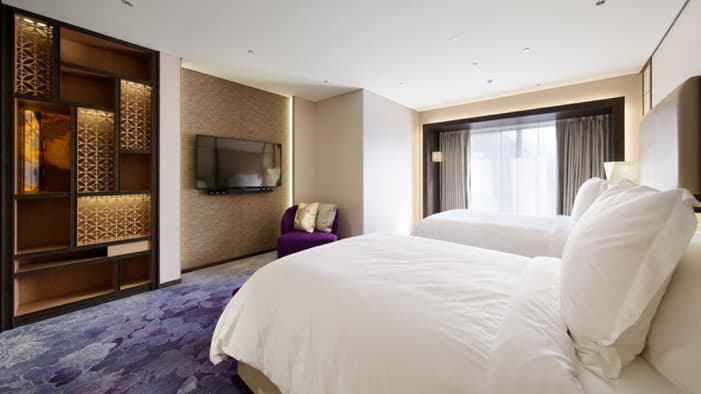 我们的连通房是多代家庭、两个家庭或多人团体一同出游时的理想之选,非常适合在京都寻求家庭住宿的宾客。借助便利的连通设计,下榻客人无需经过走廊即可轻松在两个或多个房间之间来回出入,额外的空间与隐私性还将让您的居停体验倍添舒适。可提供连通房的房型包括豪华客房、尊贵客房、尊贵古迹庭园客房、四季古迹庭园客房、单卧古迹庭园套房或双卧总统套房。