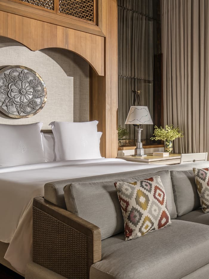 和着大自然令人平心静绪的声音,在阳台温馨的日光榻上打个小盹,或者在天窗下的土耳其浴风格双人深浸式浴缸中舒爽泡浴。房内配有特大床和沙发床,还贴心齐备各种必需品,让您与家人纵享美妙天伦时光,或与朋友欢享私密而奢华的逍遥之旅。