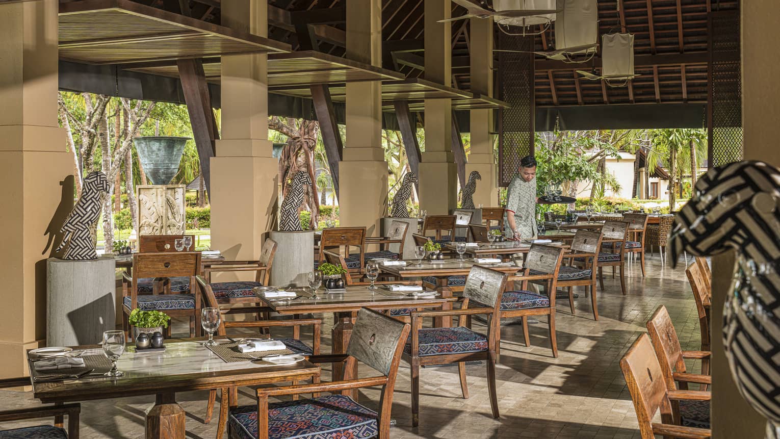 马来西亚兰卡威四季度假酒店的 Serai 餐厅坐拥一望无垠的安达曼海景,提供充满地中海风情的海滨用餐体验。如果您想在前往海滩前享用一顿休闲的自助早餐,不妨在我们的临海露台上订座用餐。