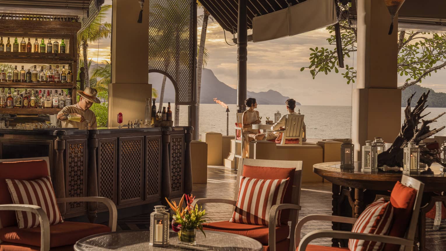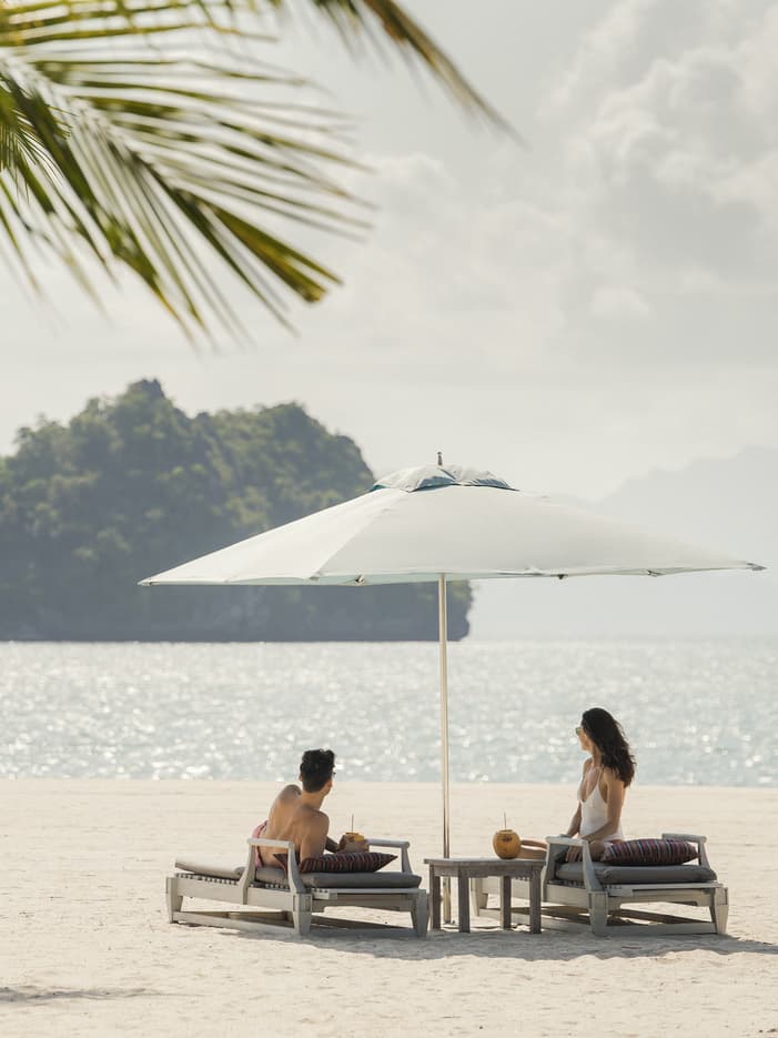 在 Rhu Bar 酒吧品尝手工调制的鸡尾酒,静看兰卡威的玫瑰色日落奇观。该酒吧设有舒适的沙滩座椅,可以远眺地平线全景,是迎接浪漫之夜的理想选择。