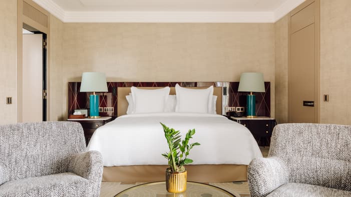 格调非凡、陈设齐全的客房提供舒适而私密的空间,同时营造出宁静祥和的氛围,让您在入住期间尽情舒展身心。