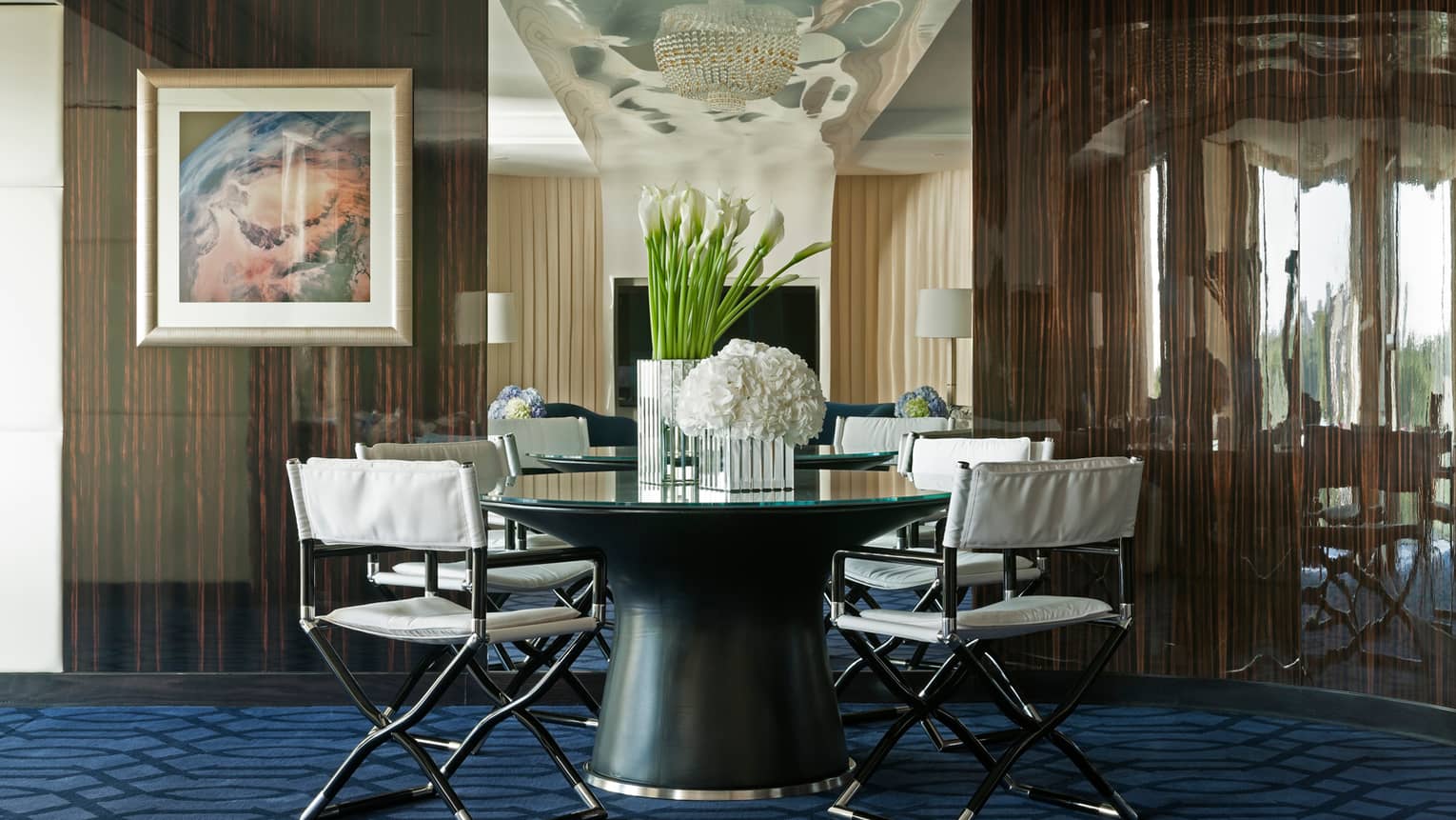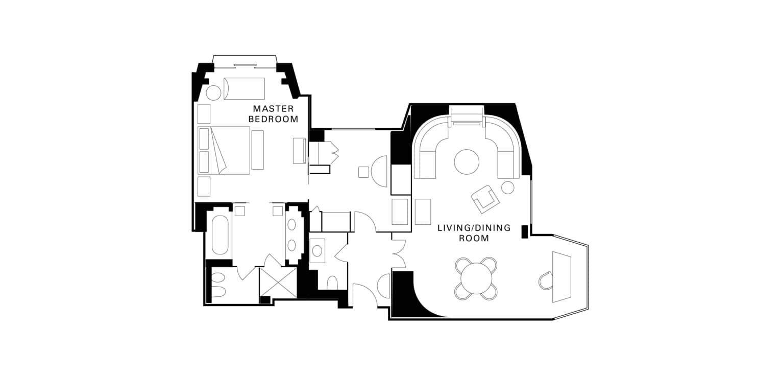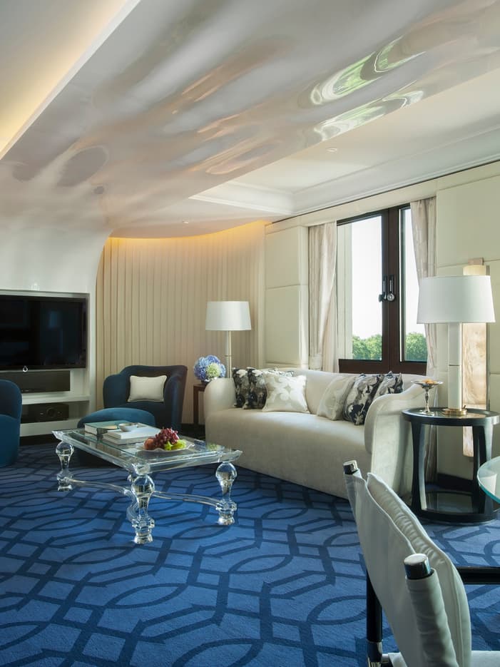 蓝色套房位于酒店八层,可欣赏奢华无比的公园景观。该套房设有舒适卧室,并与宽敞的就餐及起居区隔开。