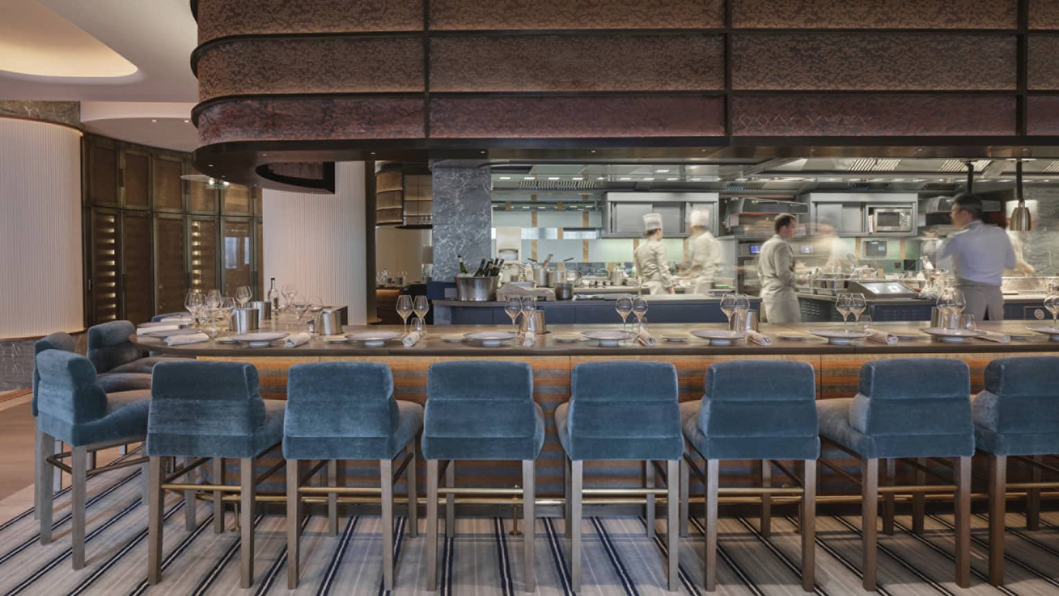 Pavyllon London 以世界水准的现场烹饪而闻名,食客可落座前排的吧台位置,近距离观看赏心悦目的烹饪艺术
