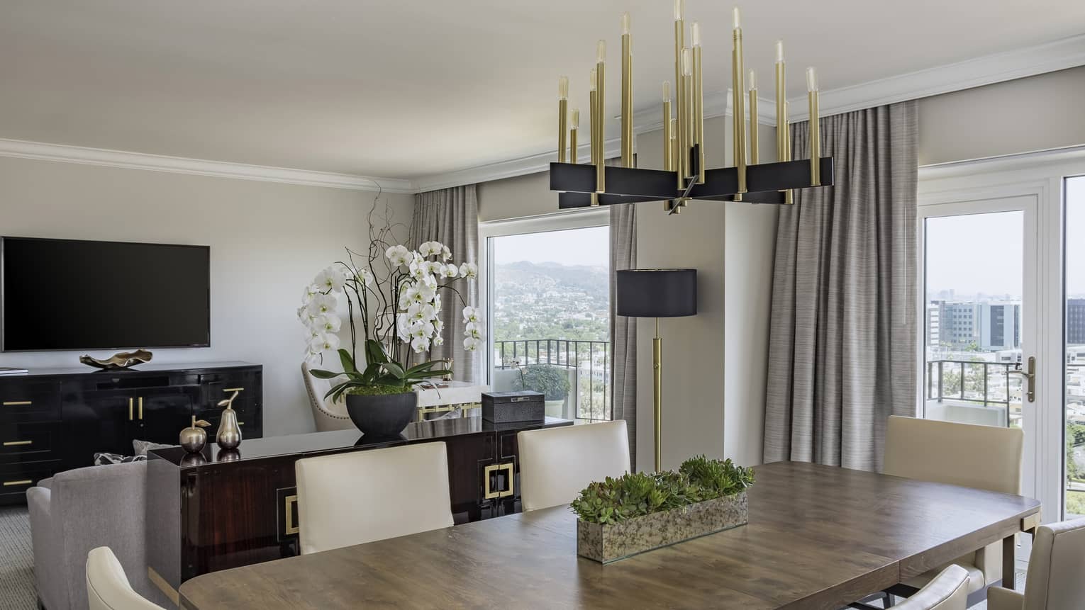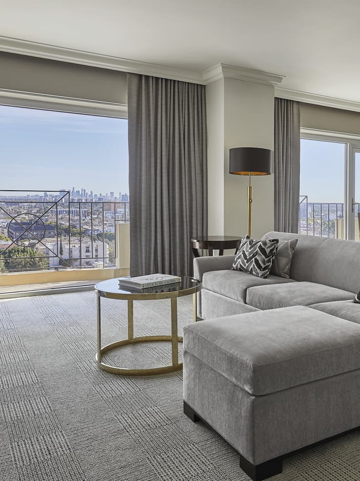 五星级豪华洛杉矶比弗利山四季酒店的特级多希尼套房采用别具一格的装潢风格,设有三个步出式阳台,可饱览城市和周围山区的全景景观。特级多希尼套房是招待亲朋好友的理想之选。
