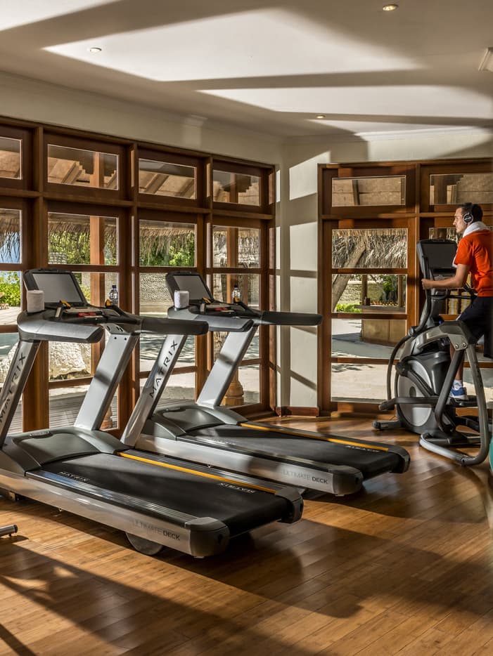 透过高大的落地窗,壮美海景悦然入眼。我们的心肺功能训练器材为最新款,配有独立平板电视,您也可以一边运动一边娱乐。