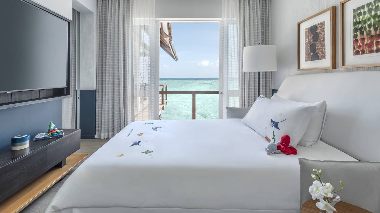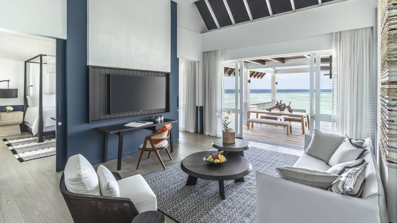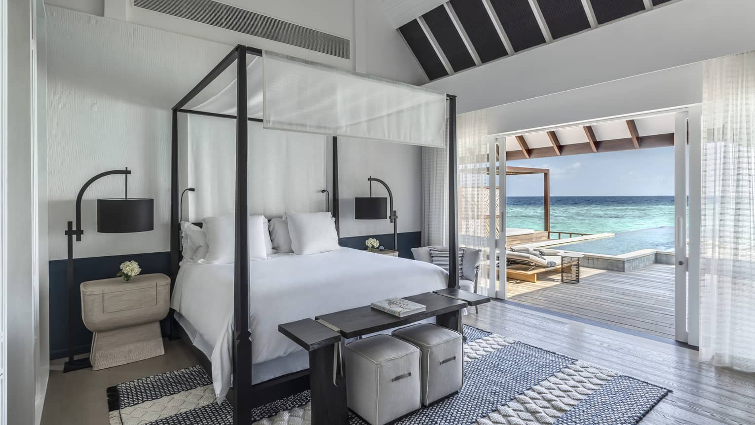 当您在水上吊床、私人泳池或观海阁楼的高处休息时,欣赏壮丽的日落。这些朝西的别墅设有宽敞的卧室、起居区、带沙发床的独立书房和直接通向大海的台阶,让您沉浸在泻湖生活的宁静之中。