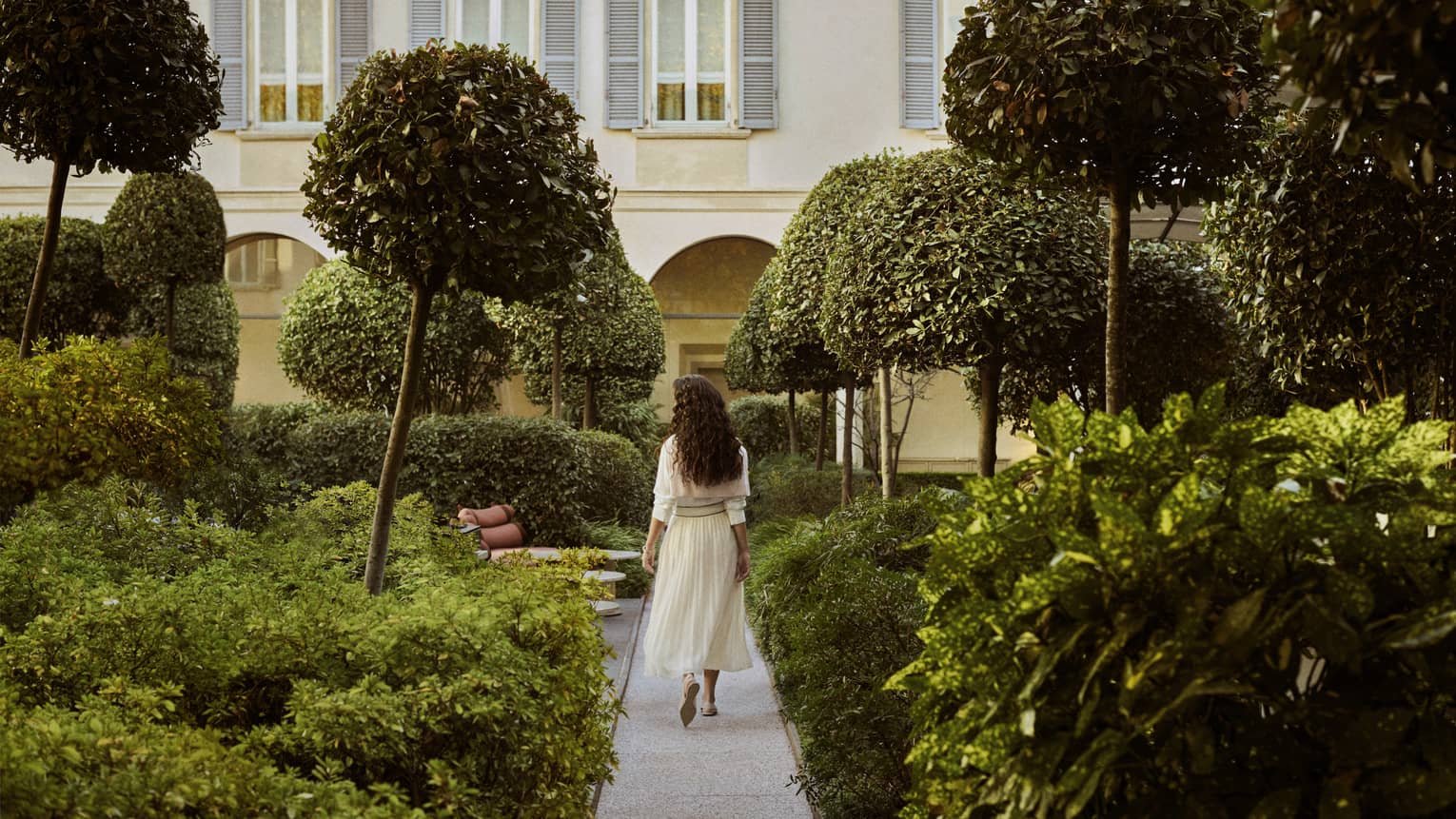 在景观庭院中的小径上徐行漫步,感受米兰市中心的闹中取静