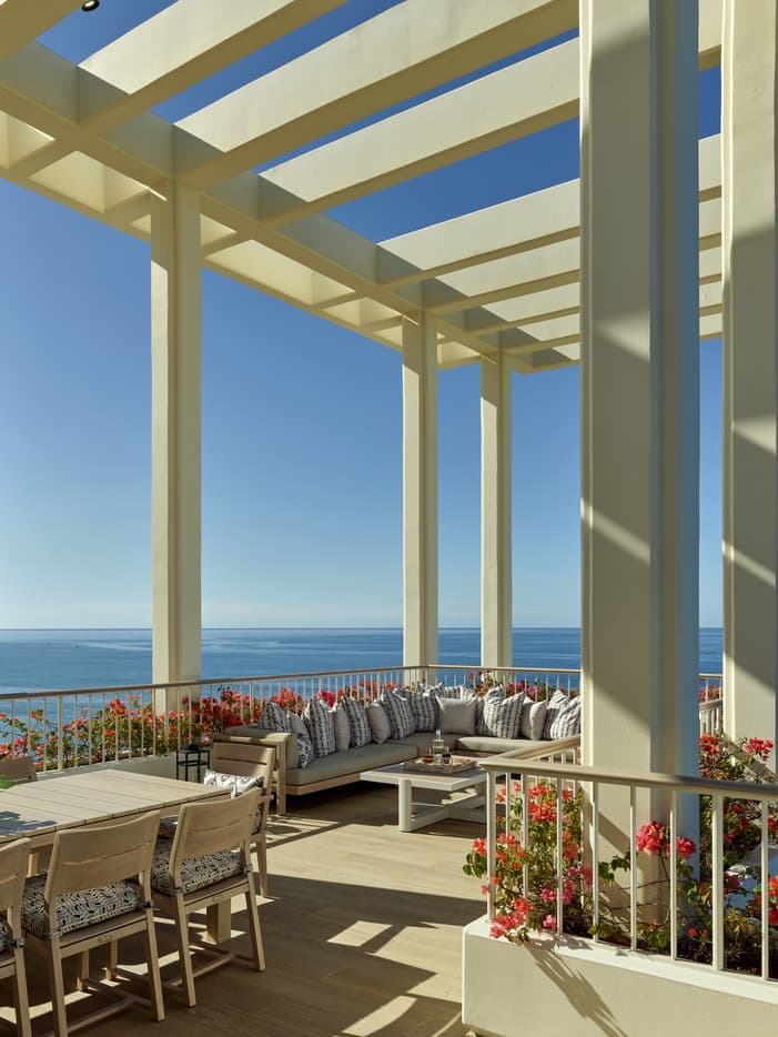 室外生活顶层套房的主要特色是面积达 74 平方米(800 平方英尺)的开阔露台。无论是在清晨练习瑜伽、在黄昏品饮鸡尾酒、与家人好友共进晚餐,还是在冬季观赏鲸鱼,这里都提供了绝佳的环境。