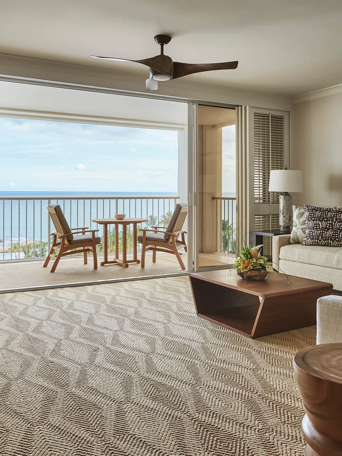 在灿烂的阳光下度过多姿多彩的一天后回到套房,不妨敞开凉台门,躺在四季定制睡床上,让海浪拍岸的舒缓之声传入这片家外之家般的热带小天地,伴您和家人安然入眠。