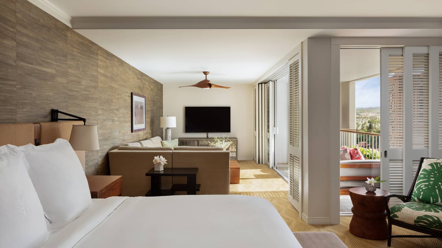 宽大的大理石浴室、四季定制睡床、高清纯平电视以及私人阳台,令这间套房宛如一片属于您自己的宁静绿洲,非常适合希望拥有更多空间享受二人世界的情侣下榻。