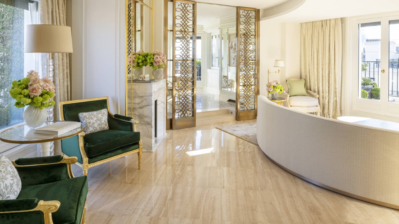 总统套房这些尊贵的套房坐拥大理石庭院或乔治五世大道的迷人景致,柔和的自然光线通过大飘窗照射进来,使得房内法国学院派画作、水晶吊灯和花艺装饰愈发光彩夺目。