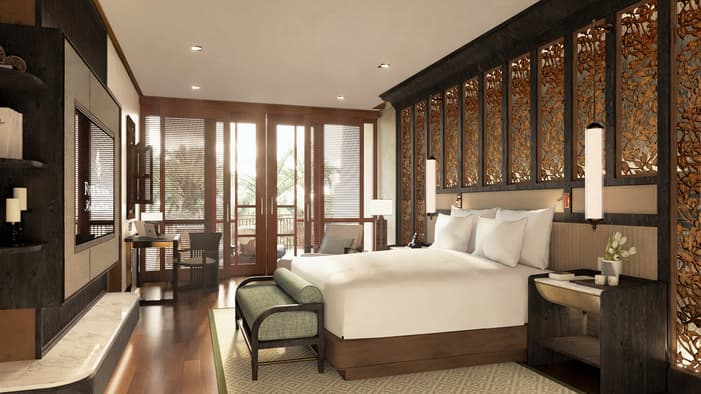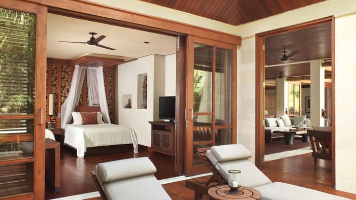 每间套房和每栋别墅都融合了当代气息和巴厘岛风格的装饰,包括华美的柚木家具和醒目的手织布艺。