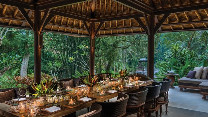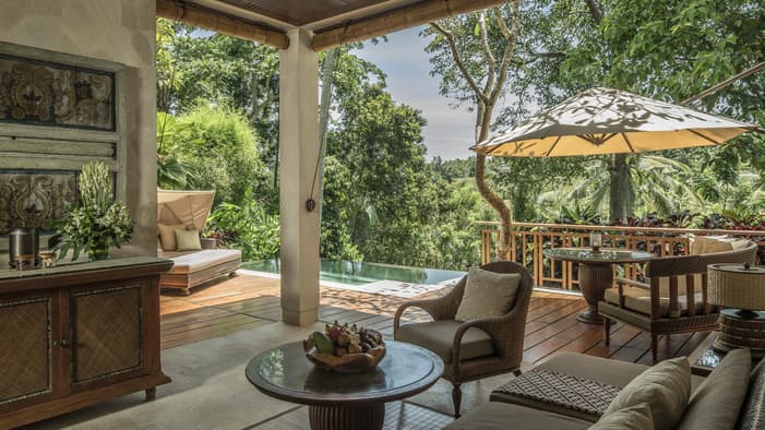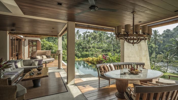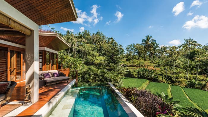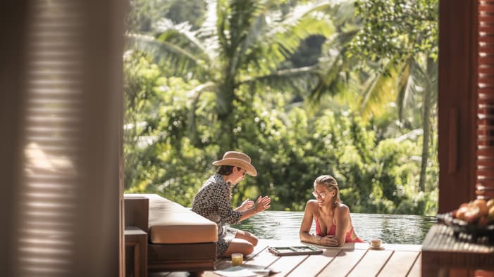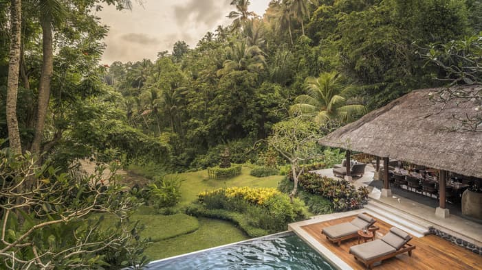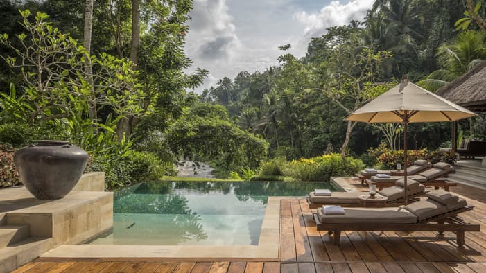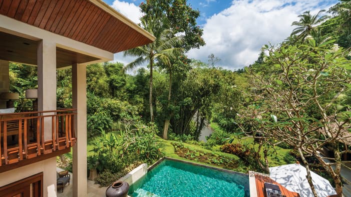 在爱咏河谷享受一场沉浸式康养度假体验。我们的巴厘岛度假酒店邻近乌布,坐拥河景、奢华的巴厘岛皇家别墅和套房,以及私人泳池,为您辟出了一片追寻内心宁静的避世天堂,非常适合家庭度假和独自寻求精神疗愈之旅的宾客。