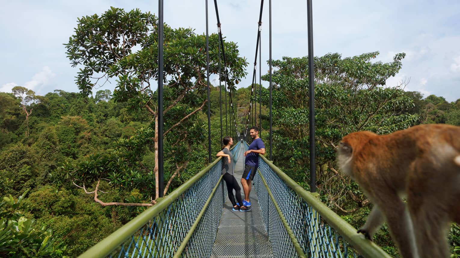 树顶漫步让您的宾客沿着 250 米长的悬浮吊桥,在麦里芝蓄水池的树梢之上漫步,鸟瞰森林树冠构成的苍翠美景。宾客走完这条观光路径后,可以享用我们准备好的丰盛早餐,然后元气满满地投入下一段探索之旅。