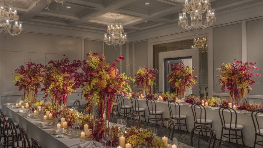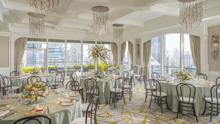 在典雅的宴会厅中款款迈步,在精致吊灯的光彩与唯美花艺装饰的映衬下互许动人誓言。随后,与新婚伴侣来到屋顶花园啜饮鸡尾酒,然后移步江南春享用屡获殊荣的粤式美馔。无论您所设想的婚礼是何种场景与风格,我们兢兢业业的婚礼专家都能让您梦想成真。