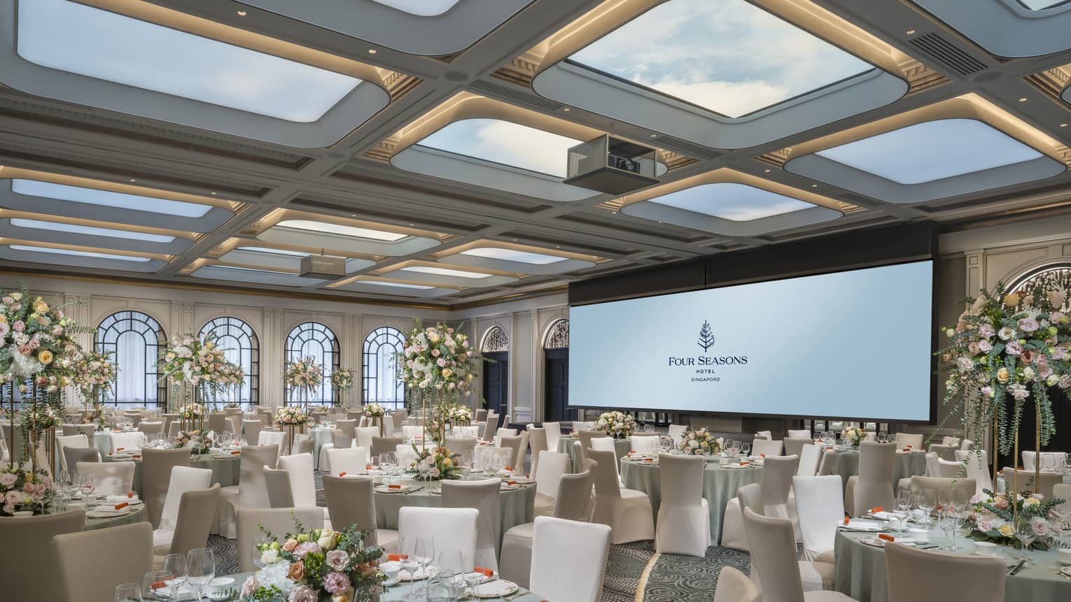 装潢典雅的无柱式四季宴会厅是举办盛大婚礼的理想场地。透过拱形窗户,可俯瞰绿树成阴的乌节林荫道。