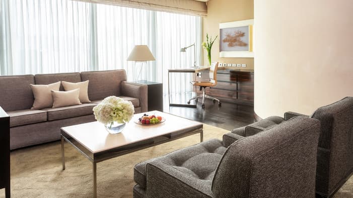 这些明亮通风的转角套房是您商务出行或与家人共度短暂假期的理想之选,套房内设特大床卧室、独立起居区,还配有餐桌和折叠式沙发床。